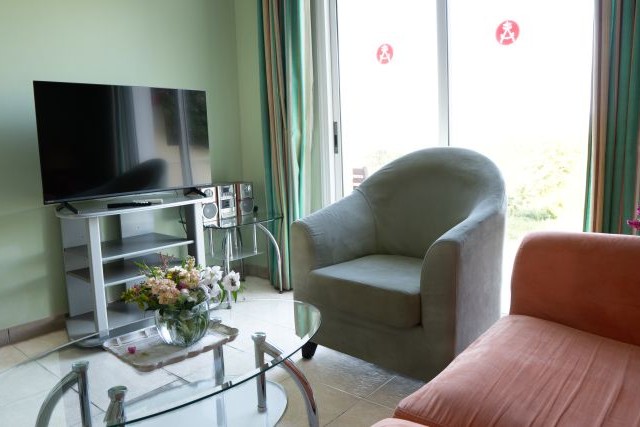 U kunt kiezen voor een studio met tuinzicht of een studio met zeezicht.