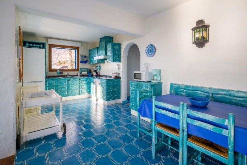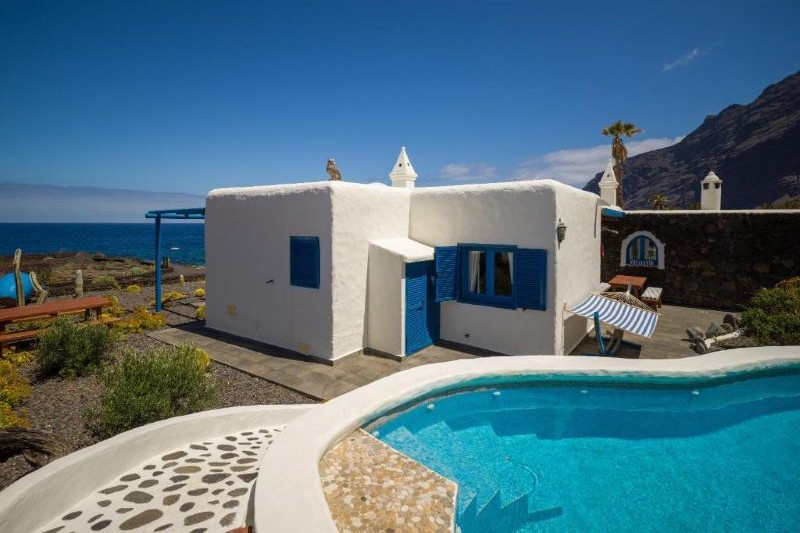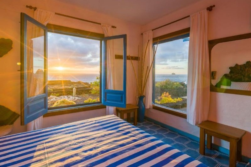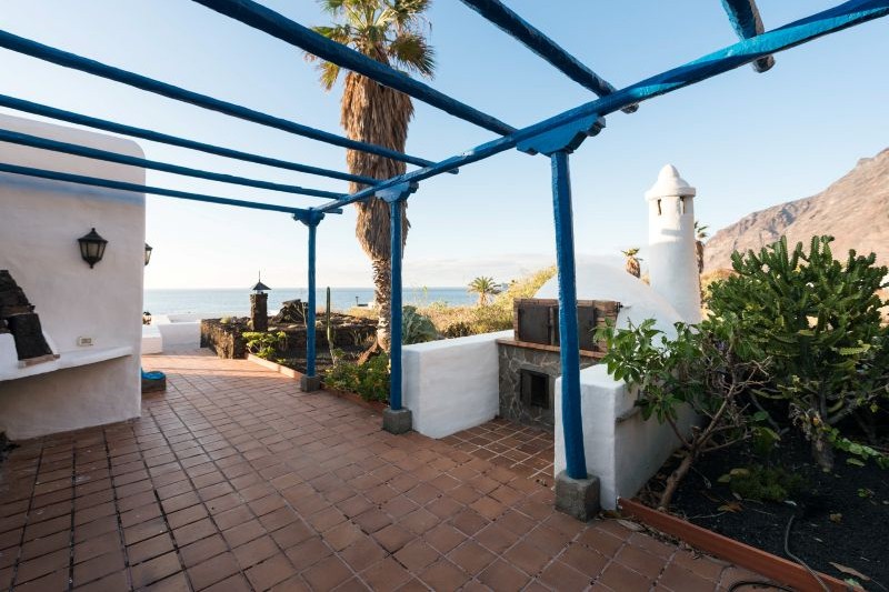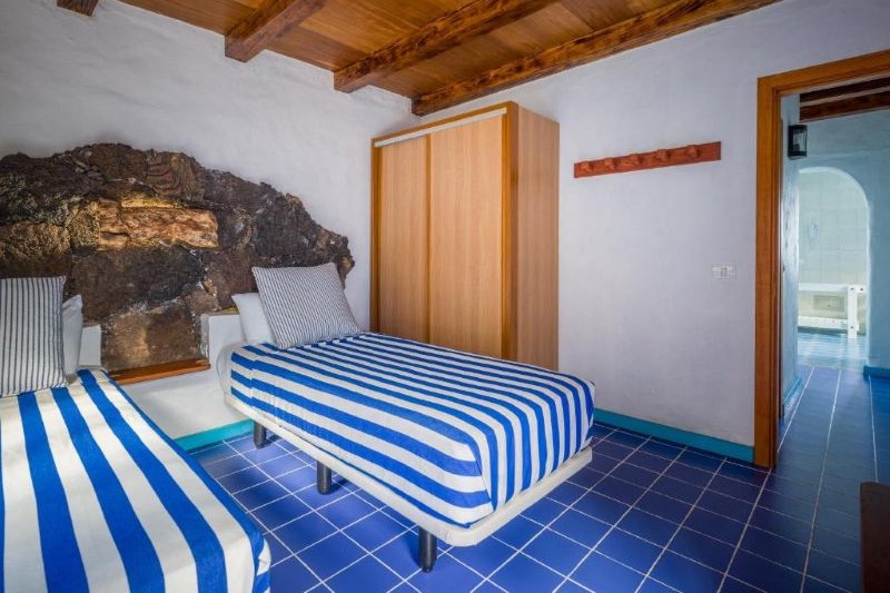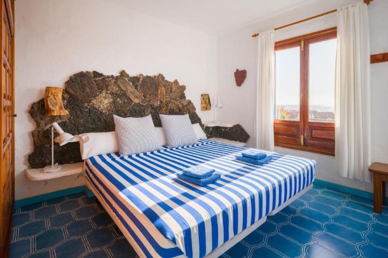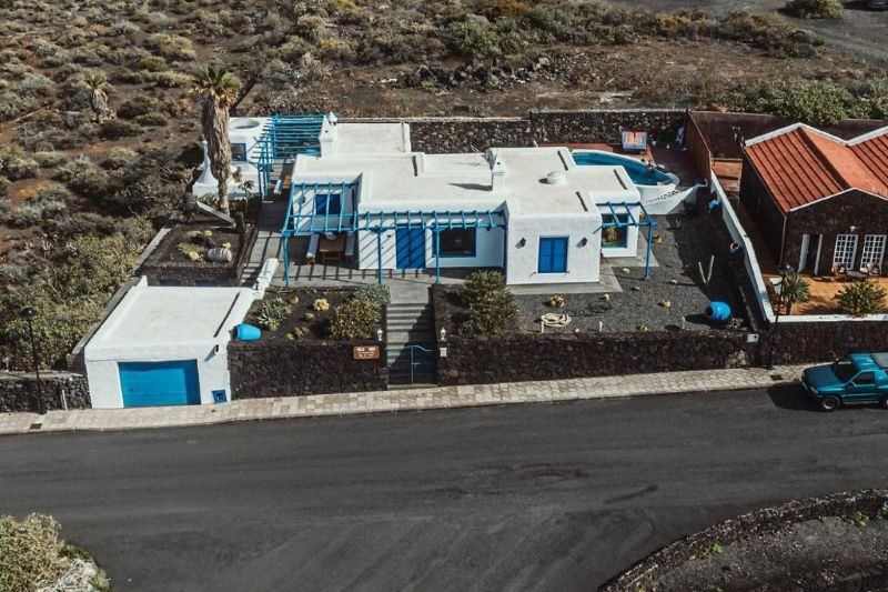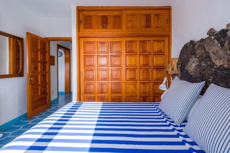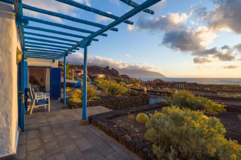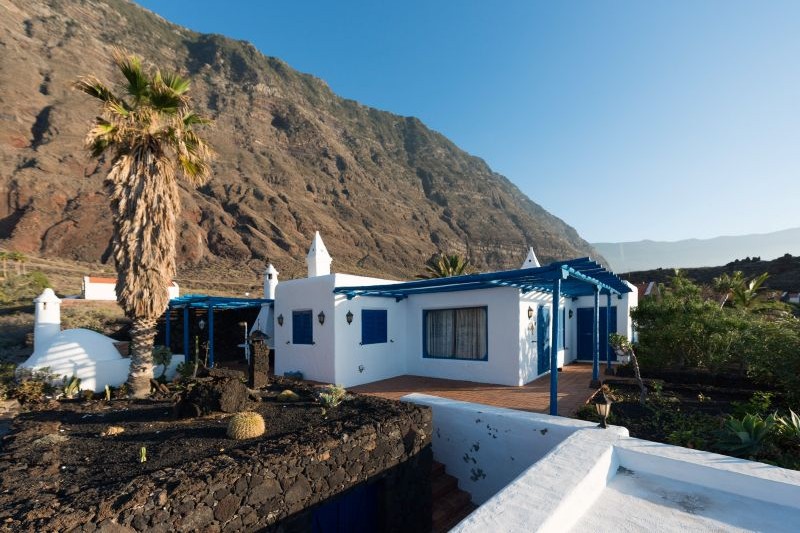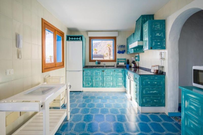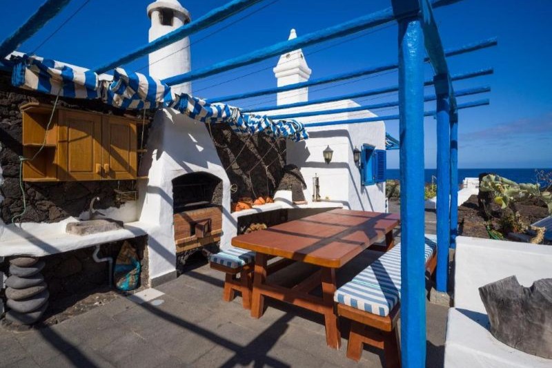 Villa Juan is een ruime gelijkvloerse villa, geschikt voor maximaal acht gasten, en ligt op een unieke locatie direct aan zee in Frontera op El Hierro. Via de entree komt u binnen in de royale woonkamer, een lichte en sfeervolle ruimte met een prachtig uitzicht op zee. Grote ramen laten veel daglicht binnen en zorgen ervoor dat de oceaan altijd dichtbij voelt. De blauwe details, karaktervolle tegelvloer en houten accenten geven de ruimte een warme en typisch eilandse sfeer.