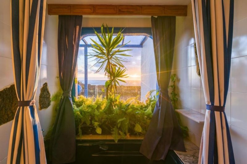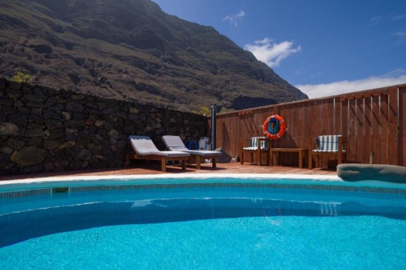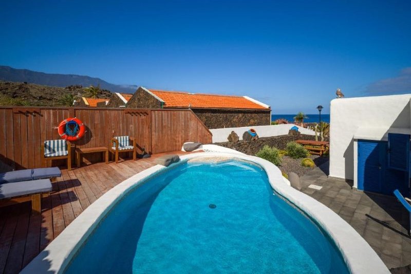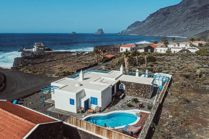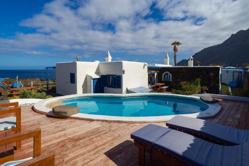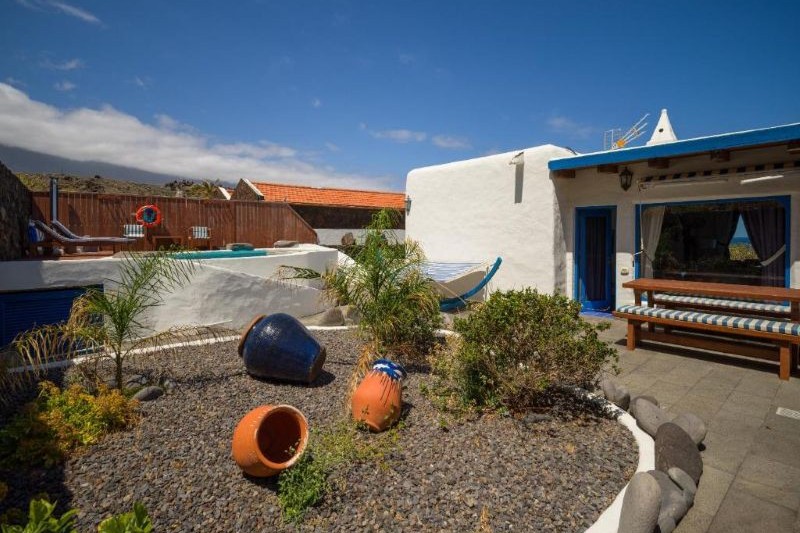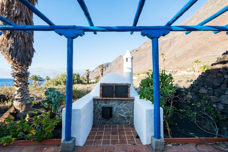 Buiten is het volop genieten. De grote tuin rondom de villa biedt alle ruimte om te ontspannen in de zon of juist een plekje in de schaduw op te zoeken. Er is een privé zwembad met solarium, ligbedden en hangmatten, perfect voor lange, rustige dagen buiten. Ook vindt u hier een barbecue, grill, houtoven en verschillende zitplekken om samen te eten met uitzicht op zee. Vanaf het terras kijkt u uit over de oceaan en de ruige kust van Frontera.
