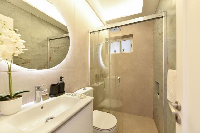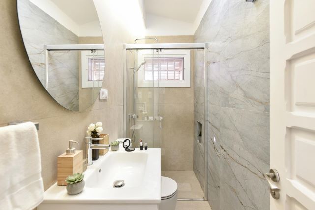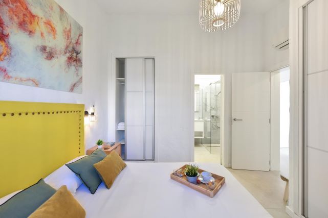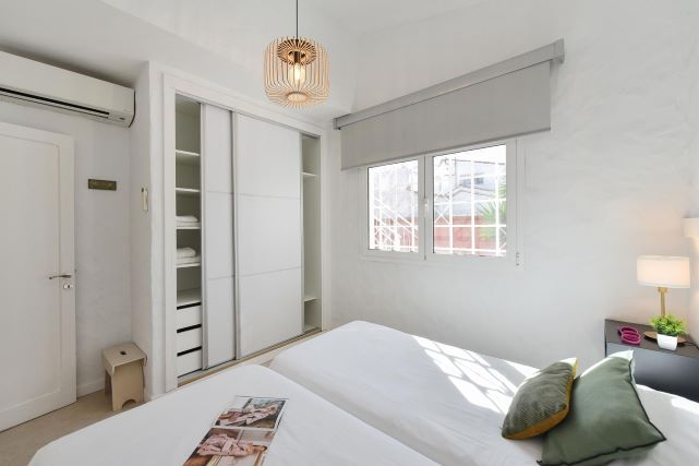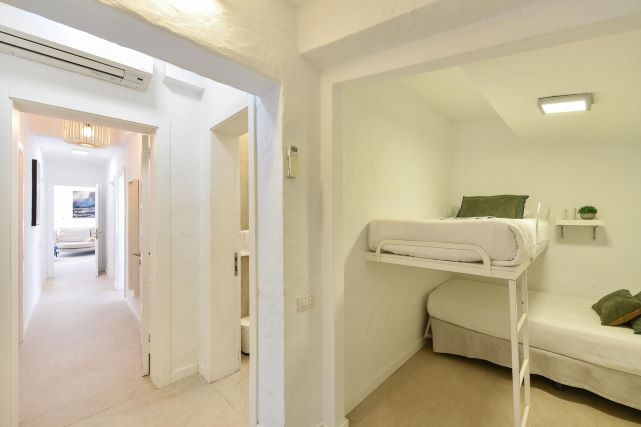 Op de begane grond zijn vier slaapkamers. De ouderslaapkamer is voorzien van een tweepersoonsbed, airconditioning en heeft een ensuite badkamer met douche, toilet en föhn. Twee slaapkamers zijn uitgerust met twee eenpersoonsbedden en airconditioning. De vierde slaapkamer is voorzien van één eenpersoonsbed en één hoogslaper. Naast de ensuite badkamer die bij de ouderslaapkamer hoort, zijn er nog twee badkamers met douche en toilet.