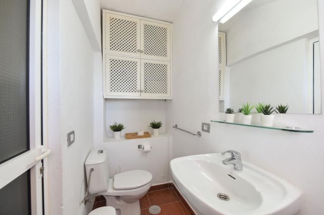 Aan de zijkant van de villa is er een trap naar boven naar een compleet ingerichte studio voor twee personen. In de studio vindt u een heerlijke bank met satelliet-tv en wifi, een eettafel en een keuken met koelkast en diepvriesvakje en een kookplaat. Verder vindt u in de studio een tweepersoonsbed en een badkamer met douche en toilet. Bij de studio hoort een terras met zitje, waar u een geweldig uitzicht op de oceaan hebt.