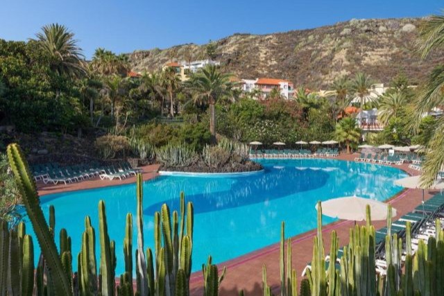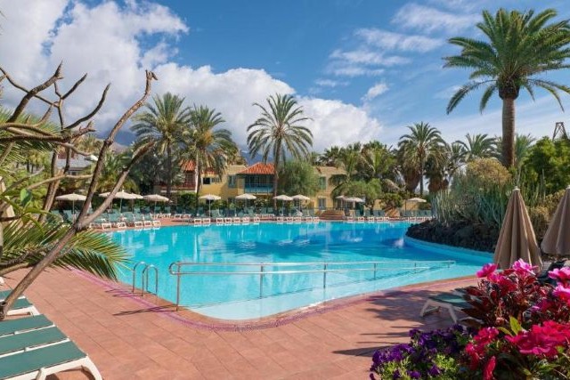 Dit 2-kamerappartement premium bij Appartementen Hacienda San Jorge is geschikt voor maximaal drie volwassenen of twee volwassenen en twee kinderen. Het appartement is ruim opgezet (circa 50 m²) en beschikt over een eigen balkon of terras met uitzicht op de tuin of patio, een fijne plek om buiten te zitten in de schaduw van palmen en tropische bloemen.
