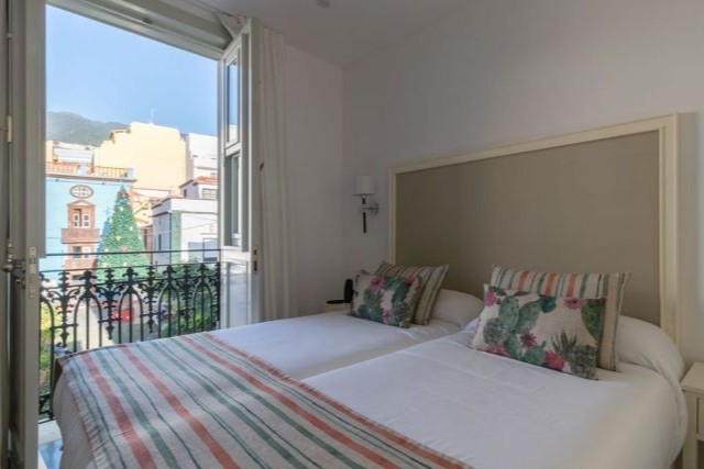 De kamer is comfortabel en verzorgd ingericht en beschikt over twee eenpersoonsbedden of een tweepersoonsbed. Verder vindt u hier airconditioning, verwarming, wifi en een flatscreen televisie. Daarnaast is er een kluisje en een bureau aanwezig. Sommige kamers beschikken over een typisch Canarisch zitje bij het raam, een ingebouwde bank met kussens waar u heerlijk kunt zitten en genieten van het uitzicht.