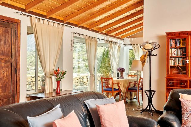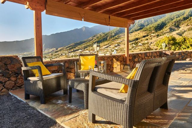 Villa Cabana (max. vier personen) is een ruime villa van 130 m², verdeeld over twee verdiepingen, met een warme en authentieke uitstraling. U bereikt de villa via een lange, licht oplopende oprit, wat meteen zorgt voor een gevoel van rust en privacy bij aankomst. Aan de voorzijde van de villa vindt u een overdekt terras met een comfortabel loungezitje en een eettafel met stoelen. Hier geniet u van een prachtig uitzicht en is het heerlijk vertoeven, van een ontspannen ontbijt tot lange avonden buiten.