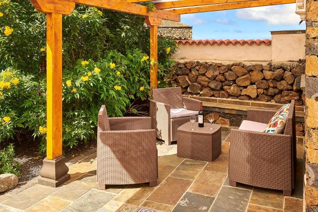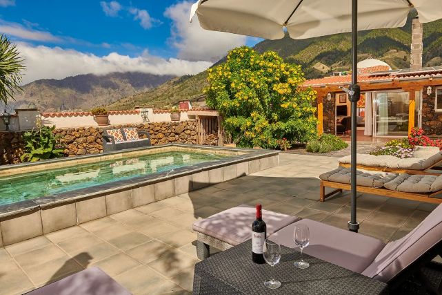 Zodra u naar buiten loopt, komt u direct op het overdekte terras met een loungezitje en een eettafel. Verder vindt u meerdere terrassen en een tuin waar u in alle rust kunt genieten van het buitenleven. Het privé zwembad vormt het middelpunt en is omringd door ligbedden. Aan het einde van de tuin leidt een pad met ongeveer twintig treden naar een hoger gelegen uitzichtpunt met zitje, waar u wordt beloond met een prachtig uitzicht en mooie zonsondergangen.