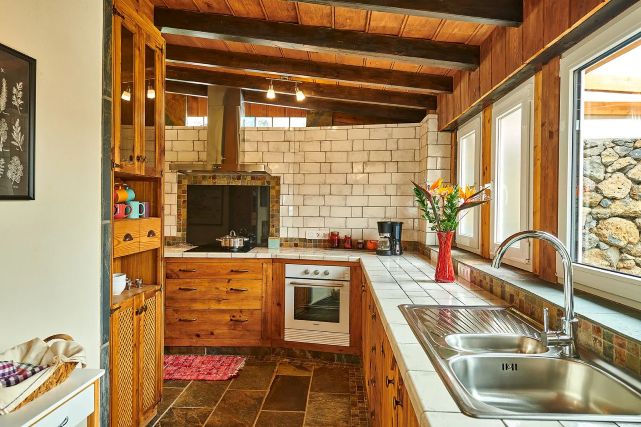 De keuken is van alle gemakken voorzien, zoals een oven, kookplaat, koelkast en diepvries, vaatwasser, koffiezetapparaat, waterkoker en broodrooster. Achter de tuin bevindt zich een halfopen ruimte met een wasmachine, wat zorgt voor extra gemak tijdens uw verblijf.