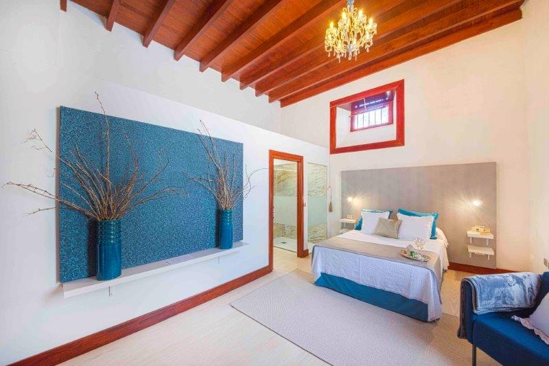 Deze hotelkamer is geschikt voor maximaal twee gasten en gelegen op de begane grond, u vindt de kamer gelijk als u het huis betreed rechts. De kamer is sfeervol ingericht met moderne meubels in de kleuren wit, blauw en zilver. Er is een tweepersoonsbed, voldoende kastruimte, satelliet televisie, airconditioning en wifi. In de zeer ruime badkamer vindt u de douche en een dubbele wastafel. Achter in de badkamer is er een apart toilet.
