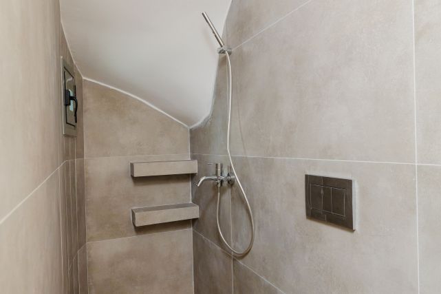 Er zijn in totaal drie badkamers aanwezig. Naast de badkamer beneden zijn er boven nog twee badkamers, beide uitgerust met een wastafel, toilet en douche.