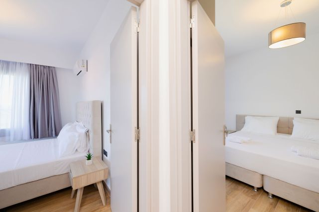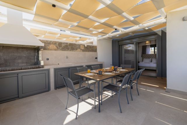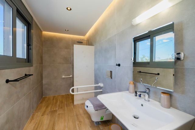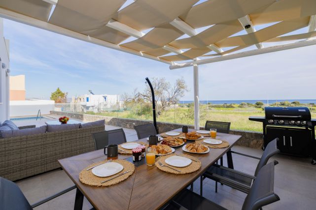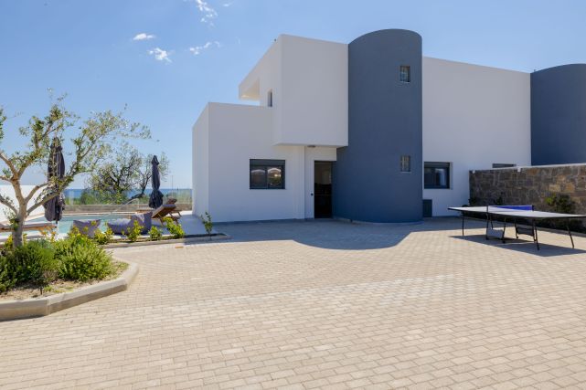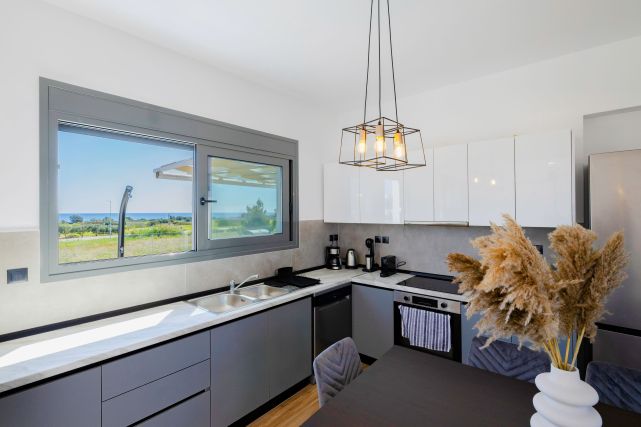 Villa Selestitis biedt plaats aan maximaal zes personen en heeft een frisse, moderne uitstraling. In de woonkamer vindt u een fijne zithoek waar u samen kunt ontspannen, met wifi en een televisie voor wat extra gemak. Dankzij de airconditioning blijft het binnen ook op warme dagen comfortabel. De keuken met eethoek ligt direct naast de woonkamer en is van alle gemakken voorzien. U beschikt hier over onder andere een koelkast, diepvries, oven, magnetron, vaatwasser, koffiezetapparaat en waterkoker.