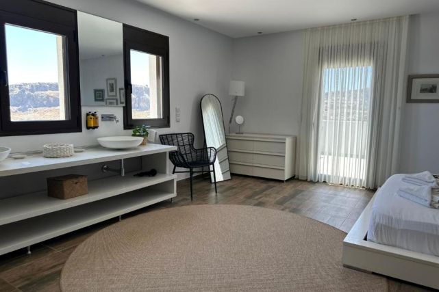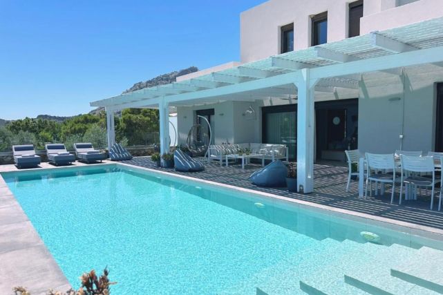 Villa Solis Lindos is een speels gebouwde villa die ruim is opgezet en stijlvol is ingericht voor tien personen, met een verrassend compleet aanbod aan faciliteiten zoals een jacuzzi, sauna, fitnessruimte en een eigen tennisbaan. Hier wisselt u moeiteloos ontspannen momenten af met actieve dagen, terwijl u geniet van het zeezicht.