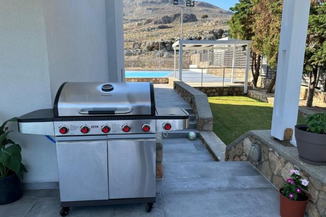 Buiten begint het echte genieten. Het privé zwembad met uitzicht op zee nodigt uit voor een verfrissende duik, terwijl u op een ligbed de zon rustig ziet zakken. De buiten jacuzzi is een heerlijke plek om te ontspannen in de open lucht. Aan de eettafel buiten en bij de barbecue ontstaan vanzelf lange, sfeervolle avonden.
