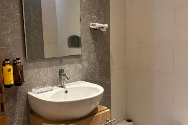 Een verdieping lager liggen twee slaapkamers. Eén slaapkamer beschikt over een tweepersoonsbed en een eigen sanitaire ruimte met douche, terwijl de andere slaapkamer is ingericht met twee eenpersoonsbedden. Beide kamers hebben directe toegang tot een omsloten terras, wat zorgt voor een fijne, beschutte plek buiten.