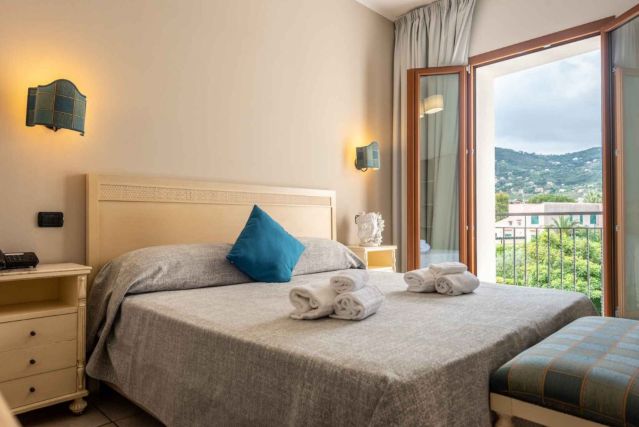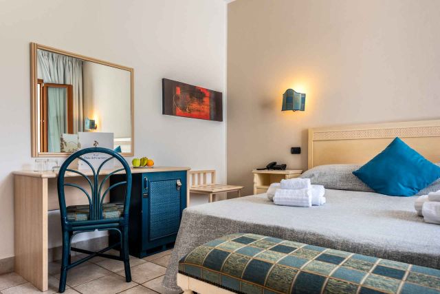 Er valt aangenaam daglicht naar binnen en u kijkt uit op de tuin van het hotel, wat zorgt voor een rustige en ontspannen sfeer. Deze kamer beschikt niet over een balkon.