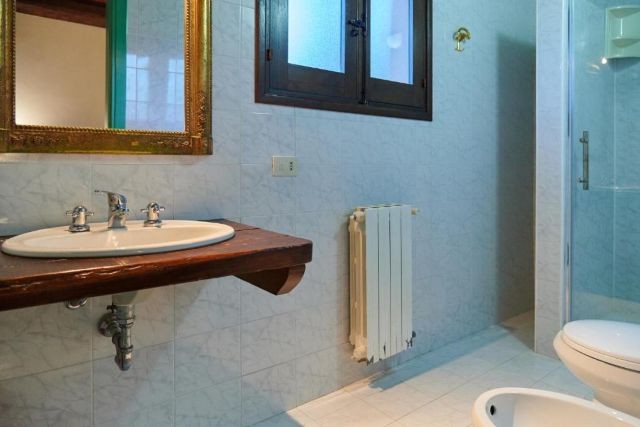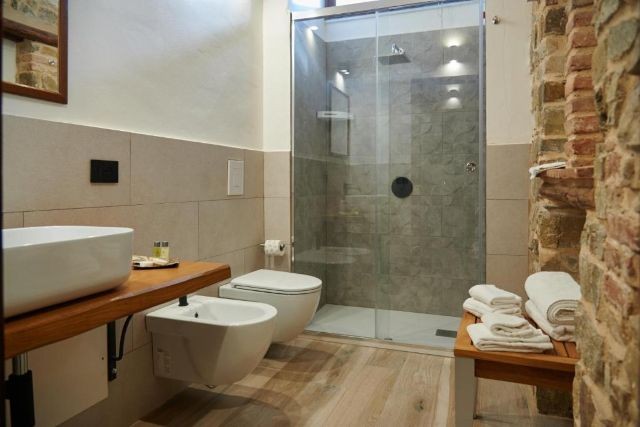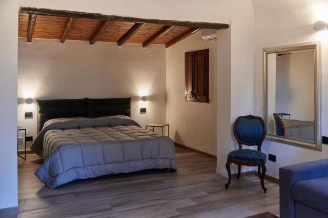 De kamer is voorzien van airconditioning, verwarming en een kledingkast. De marmeren vloer geeft de kamer een frisse, mediterrane uitstraling en sluit mooi aan bij de authentieke sfeer van het landgoed. De badkamer is uitgerust met een douche, toilet, bidet, föhn en gratis toiletartikelen.