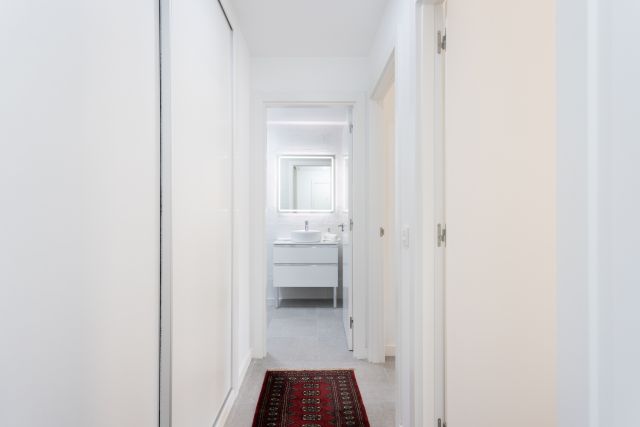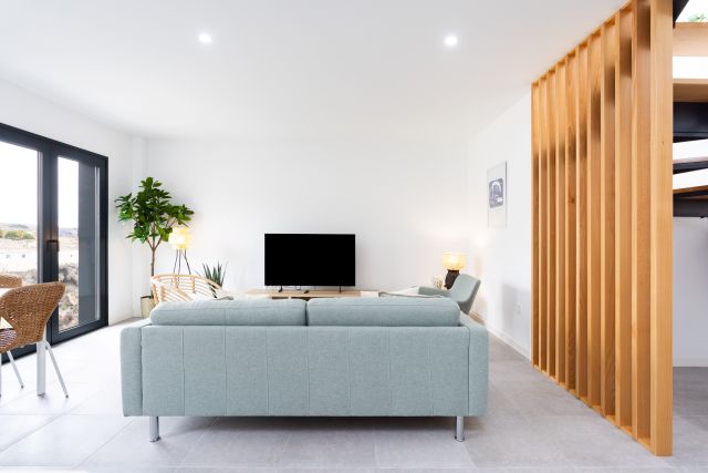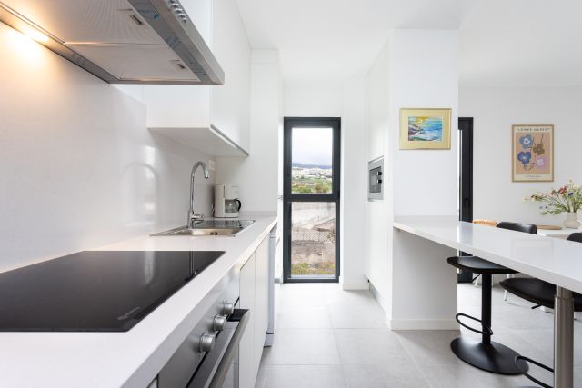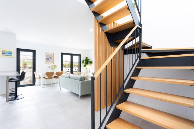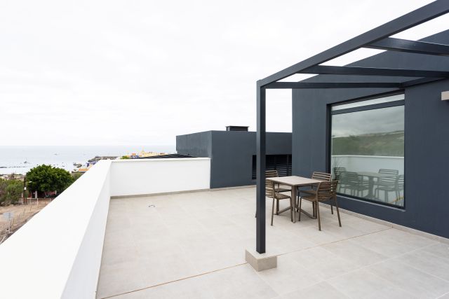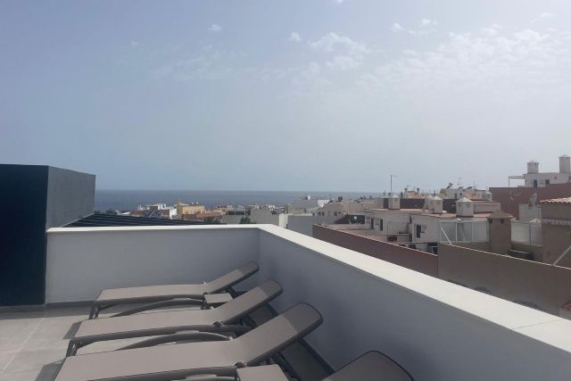 Vanuit de woonkamer brengt een trap u naar de tweede verdieping, waar u een extra toilet en het royale privé dakterras van ongeveer 70 m² vindt, een van de grootste pluspunten van dit appartement. Hier staan ligbedden, een buitendouche, een tafel met stoelen en twee hangmatten voor een ontspannen siësta. Dankzij het uitzicht is dit een heerlijke plek om van de zon te genieten of de avond gezellig buiten door te brengen.