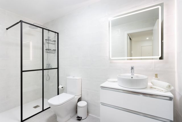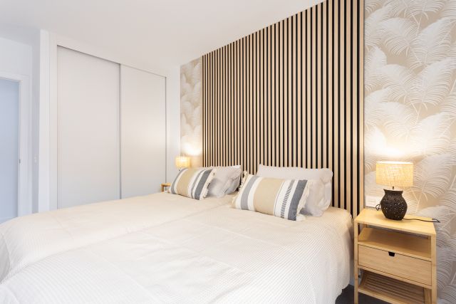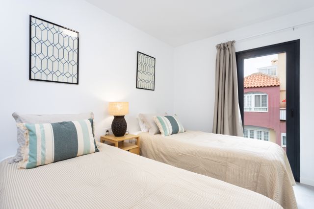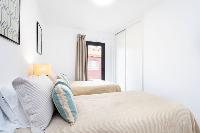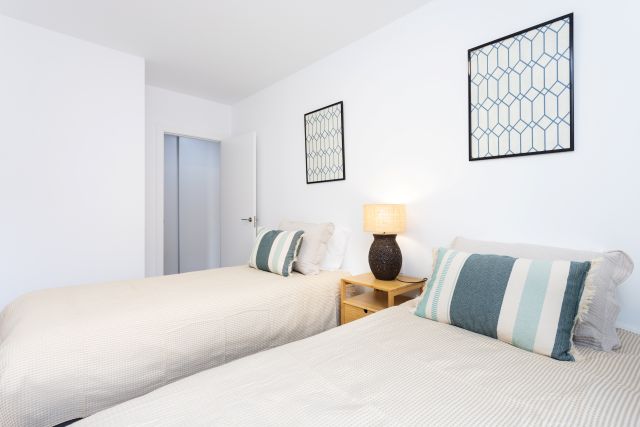 Het appartement beschikt over twee slaapkamers: in de eerste staan twee eenpersoonsbedden die aan elkaar zijn geschoven en in de tweede slaapkamer staan twee losse eenpersoonsbedden. De badkamer is voorzien van douche, wastafel, toilet, föhn.
