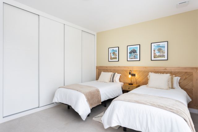 Op de bovenverdieping vindt u vier rustig ingerichte slaapkamers, elk met twee eenpersoonsbedden en voldoende kastruimte voor uw spullen. De drie moderne badkamers, elk uitgerust met een inloopdouche, wastafel en toilet, garanderen comfort en gemak. Een badkamer is alleen te bereiken via de slaapkamer (slaapkamer met ensuite badkamer). Twee van deze slaapkamers hebben directe toegang tot een zonnig balkon, waar u het panoramische uitzicht op de omliggende natuur en het zwembad in alle rust kunt bewonderen.