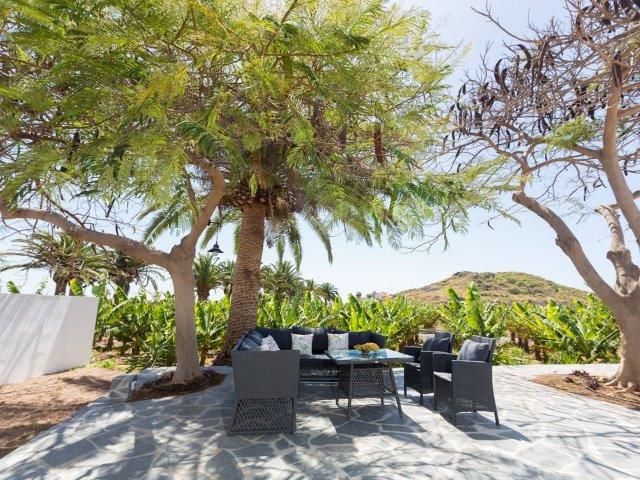 Bij de villa heeft u de beschikking over uw eigen tuin met tropische begroeiing. Er is een gezellig terras met een loungeset om heerlijk van de Spaanse zon te genieten. Er is genoeg ruimte om uw auto te parkeren.